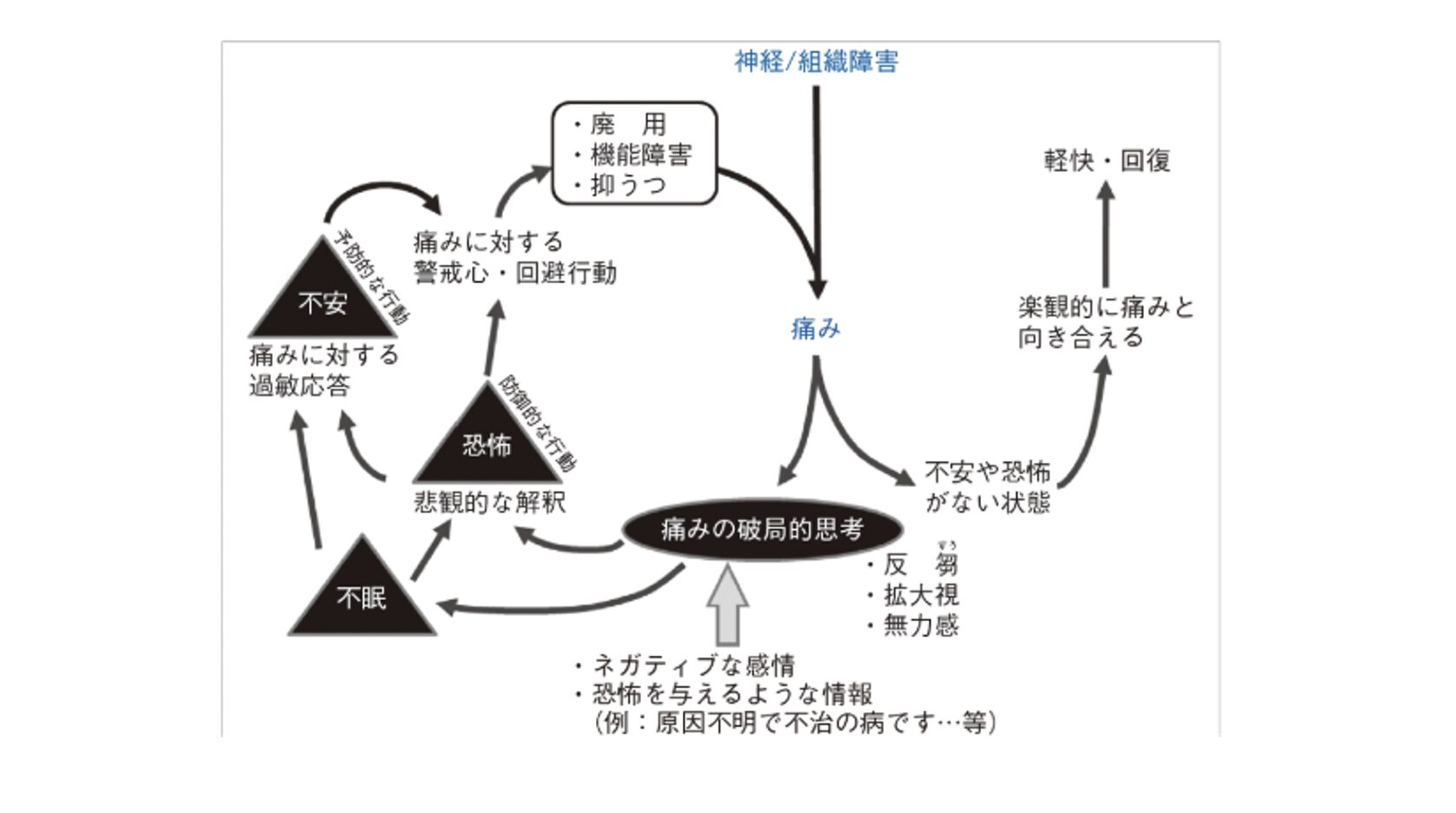 Leeuw M.et al : The fear-avoidance model of musculoskeletal pain : Current state of scientific evidence. J Behav Med 2007 ; 30 : 77-94 doi : 10.1007/s10865-006-9085-0. PMID : 17180640 より一部改編