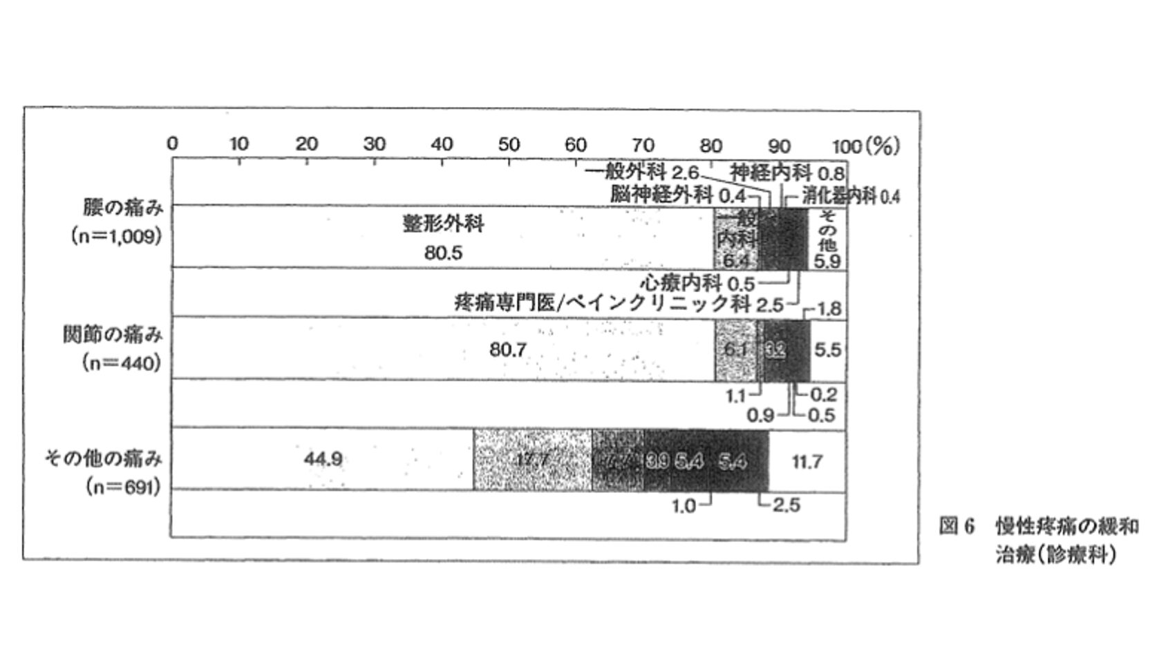そして、「腰痛」「関節痛」「そのほかの痛み」のいずれにおいても、整形外科を受診していることがほとんどです。